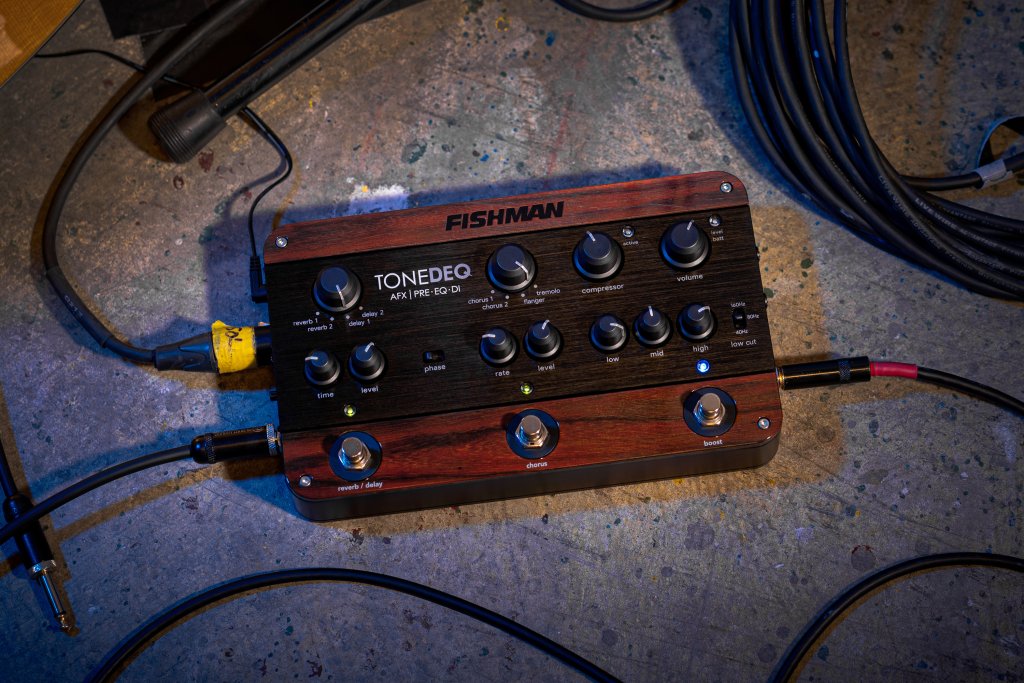 The four previous tools we’ve discussed are absolutely wonderful choices for guaranteeing a great gig, but they are perhaps more aimed at players who want conventional acoustic tones. For those who prefer to craft unique acoustic sounds, a preamp with more signal-processing options is key. With 4-band EQ and a low-cut switch, onboard compression and boost, a selectable phase inverter for feedback control, and a Class-A preamp, the Fishman ToneDEQ Preamp EQ is a formidable tone-shaping machine. But it adds two reverbs, two delays, two choruses, a flanger, and tremolo to the sonic recipe.