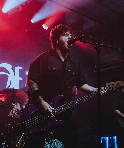 Joining Boundaries in 2022, Nathan has performed on and released 2 full-length records with the band, ‘Burying Brightness’ and ‘Death Is Little More’ respectively, while also touring all of North America, Europe and Australia.