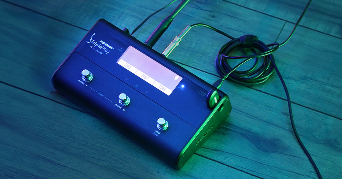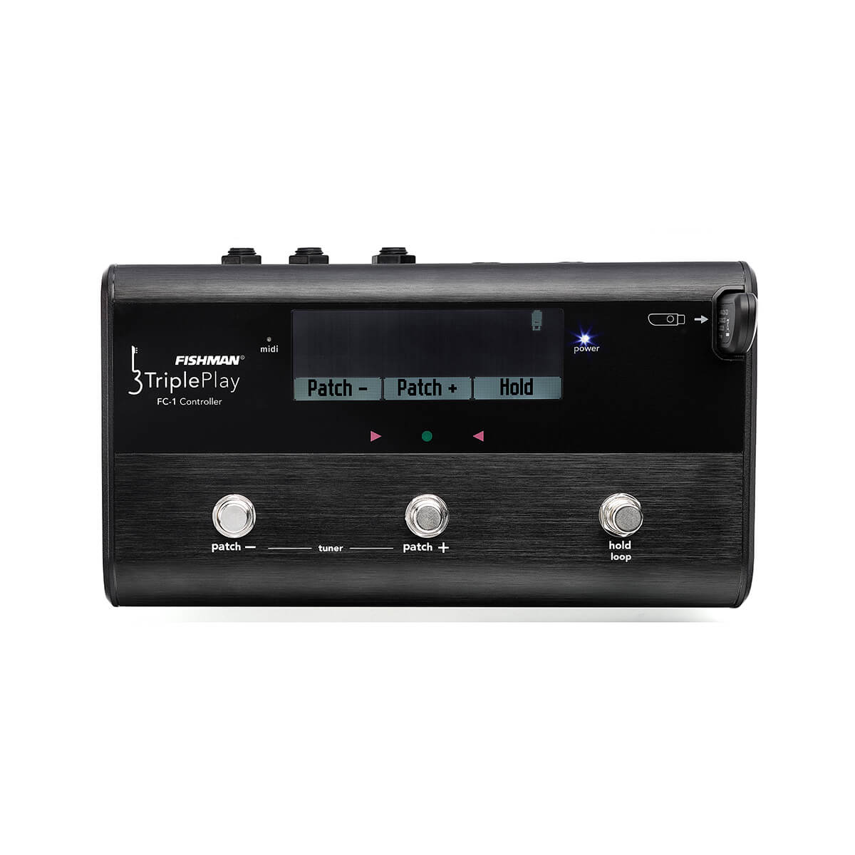 Three programmable switches default to patch selection, hold, tuner access, and TriplePlay sensitivity settings, with the added ability to program each to send a separate MIDI CC as a momentary or latched controller. An additional programmable expression pedal input allows you to control volume or any other.