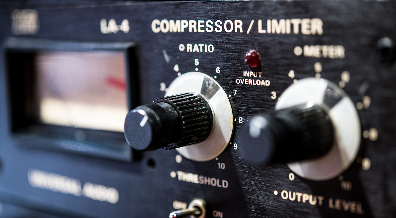 Threshold. Simply put, the threshold setting tells the compression circuitry when to start compressing the input signal. The setting is typically marked in decibels, and anything below the selected dB is uneffected, while signal peaks higher than the dB setting are compressed. If you’re new to the compression game, it may be confusing to see a setting such as -10dB and know how it relates to a signal in a musical or practical sense. Here’s a tip: Watch the compressor’s gain-reduction meter as you adjust the threshold. If, for example, you wanted to tame a loud snare drum, the meter will reveal how much the snare is being compressed based on the threshold level. You should also use your ears to evaluate the desired compression, of course, but the meter provides a good peak into what a particular threshold level is doing to the signal being compressed. You can also consider that the lower you set the threshold level, the greater the gain reduction—or, simply put, the smoother and more even the signal’s dynamic range will be. Select a higher threshold level, and more of the signal will remain uncompressed, and only higher peaks will get attenuated.